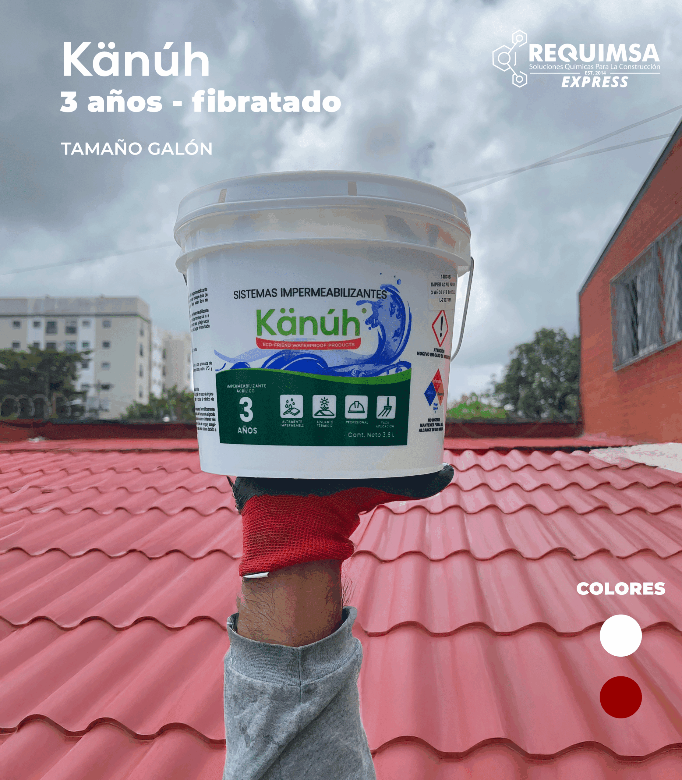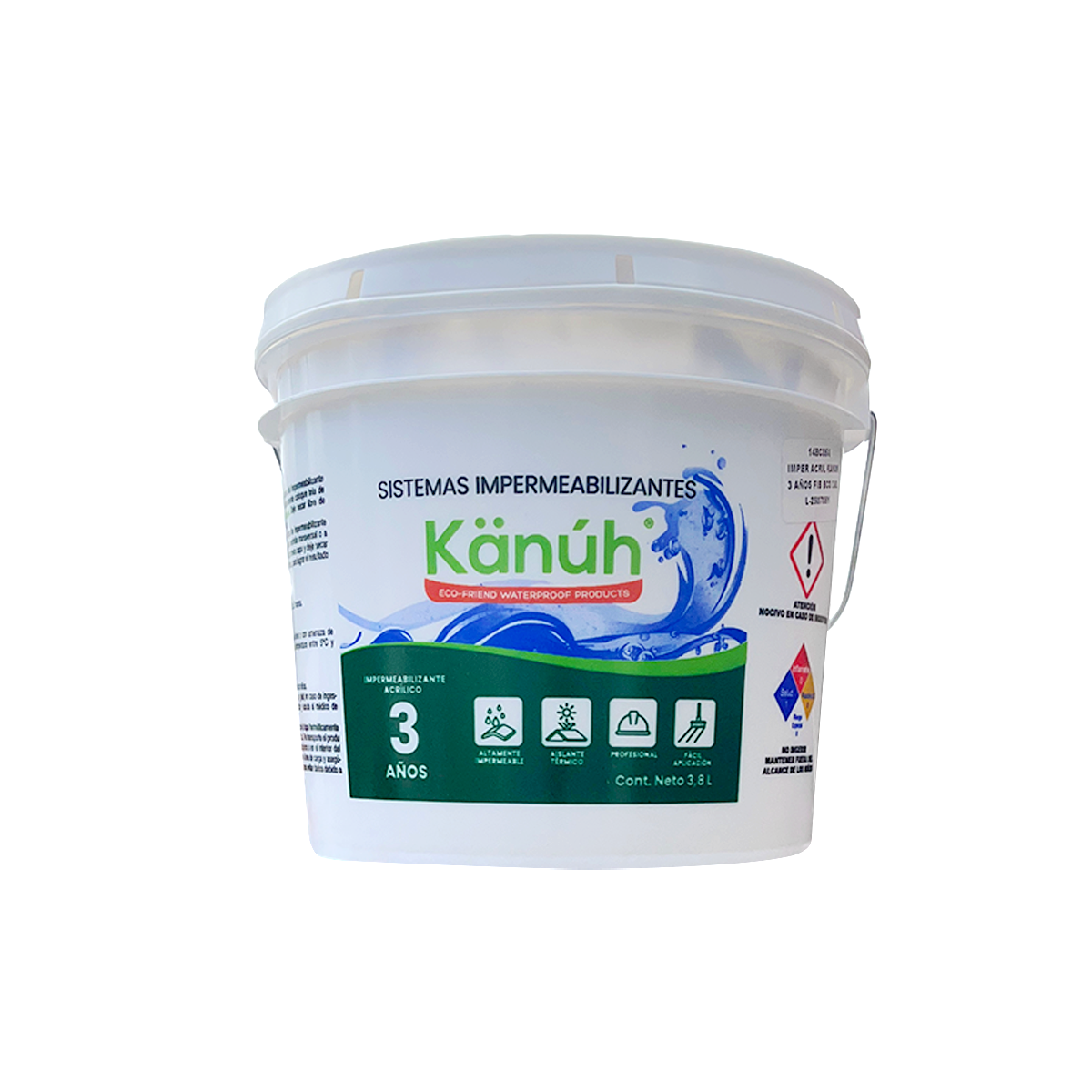Känúh 3 años, es un impermeabilizante y aislante térmico de alto desempeño, elaborado a base de polímeros acrílicos de alta calidad, cargas minerales, aditivos y pigmentos.